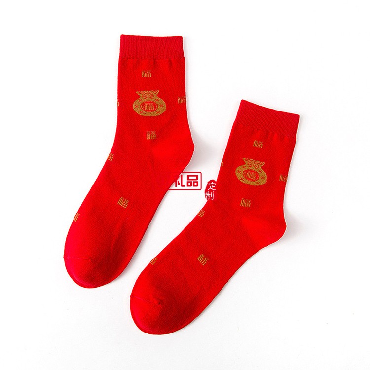 本命年中筒紅色襪子可定制