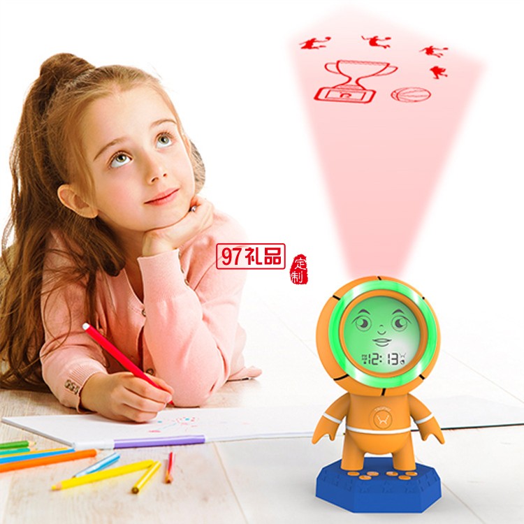 NBA籃球投影鬧鐘 床頭可愛表情電子鐘