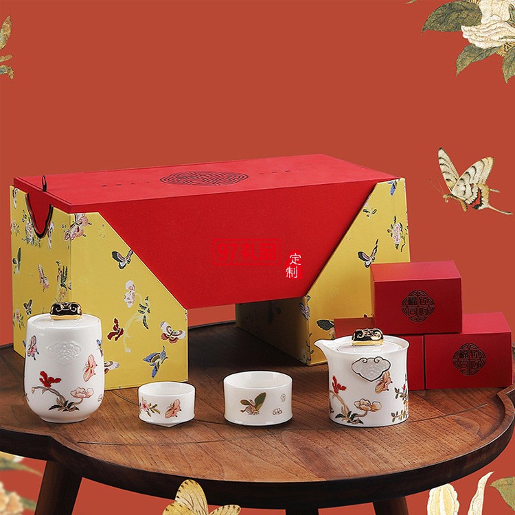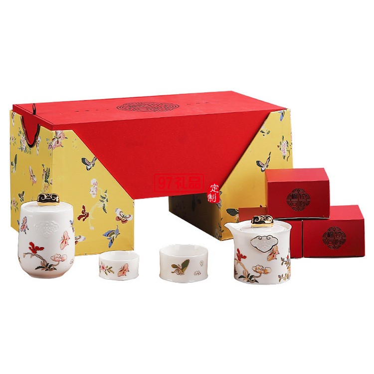 陶瓷快客杯一壺兩杯 新年國潮玉瓷描金功夫茶具套裝