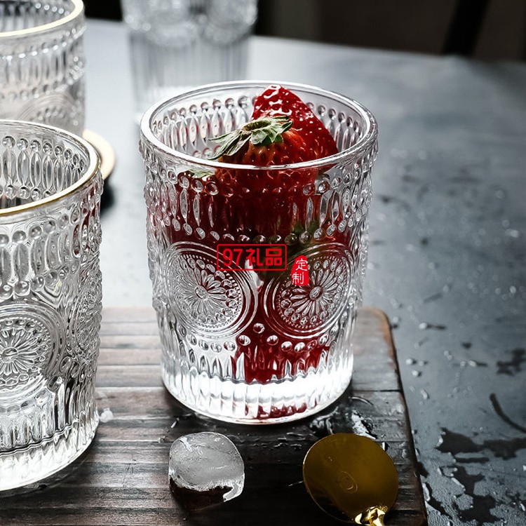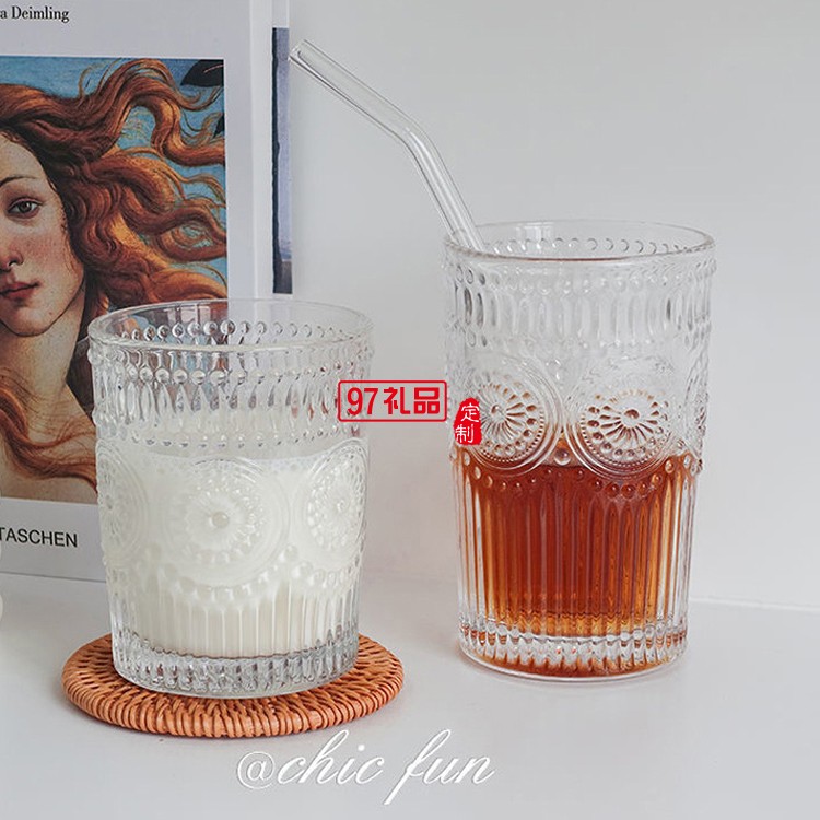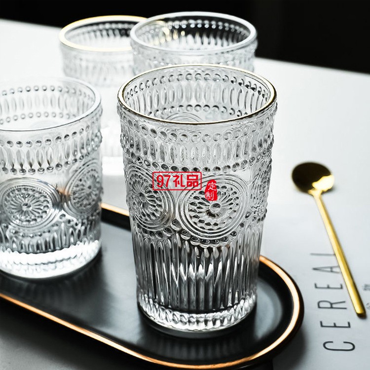 玻璃透明太陽(yáng)花杯子家用水杯飲料果汁杯多規(guī)格啤酒杯子