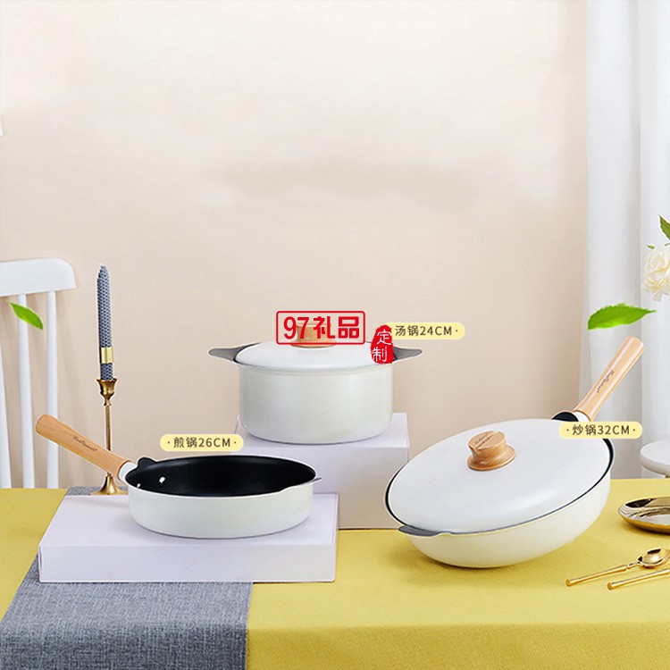 定制不粘鍋三件套鍋具家用加厚炒鍋大容量湯鍋送客戶禮品員工福利