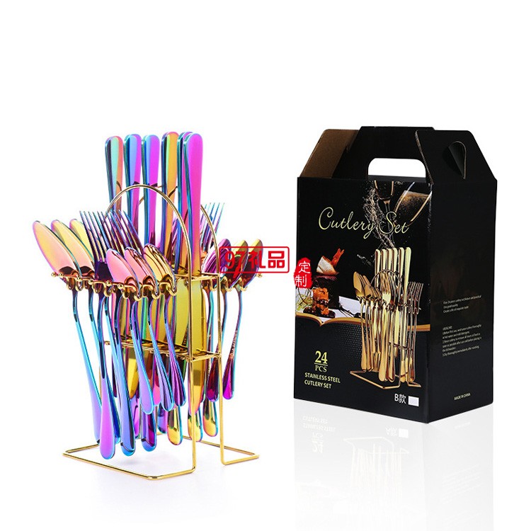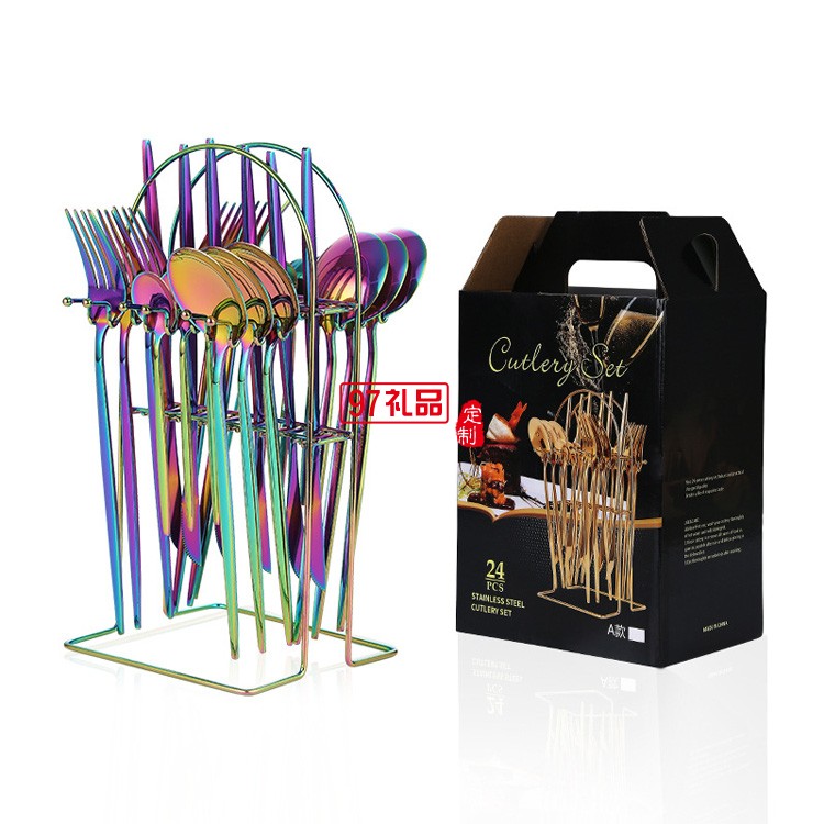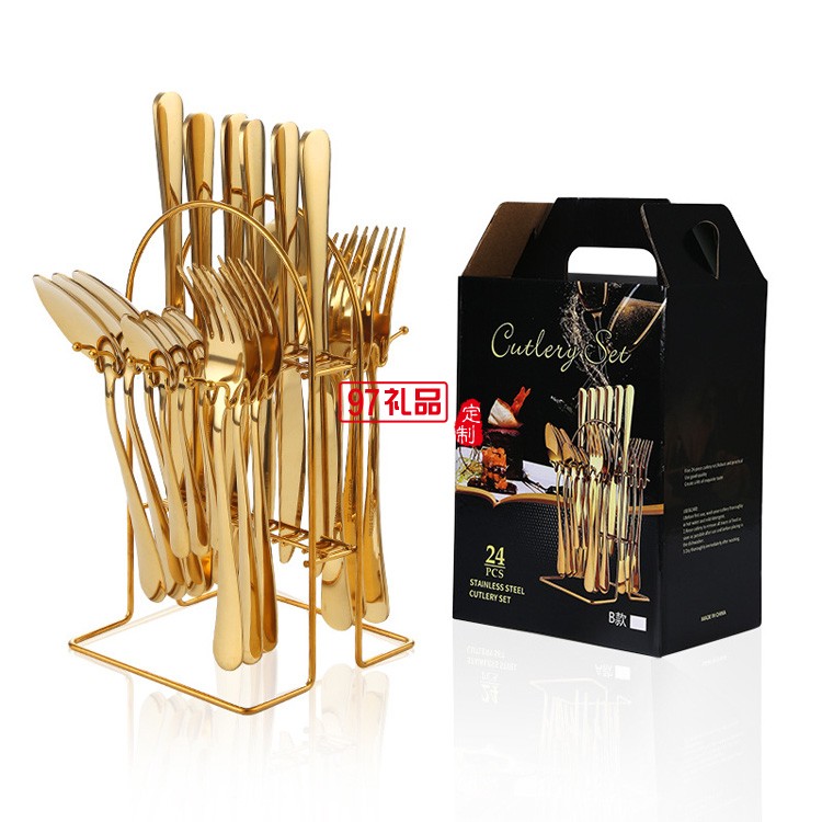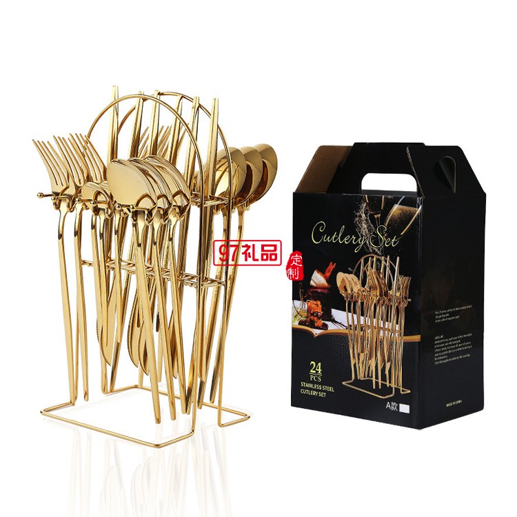 不銹鋼餐具24件套葡萄牙西餐牛排刀叉勺餐具架禮盒套裝
