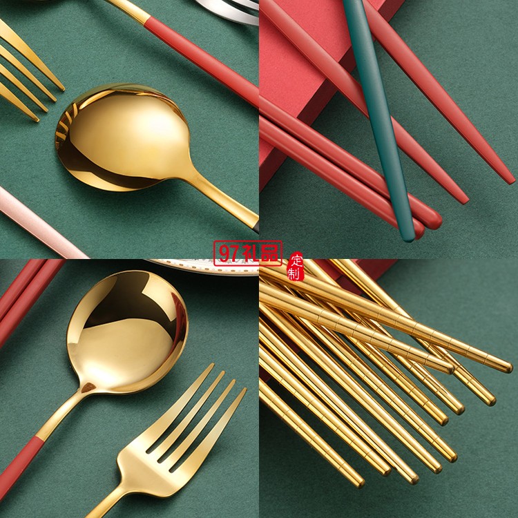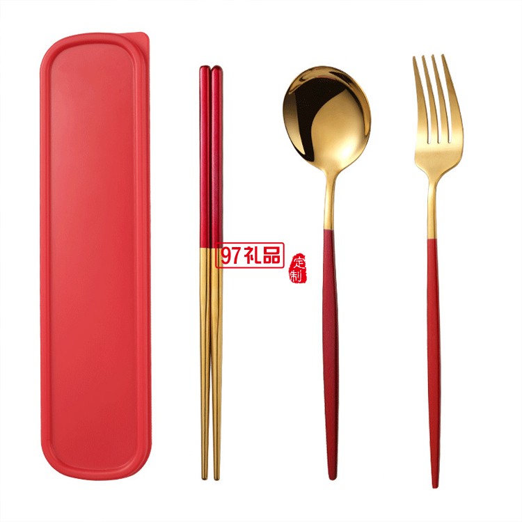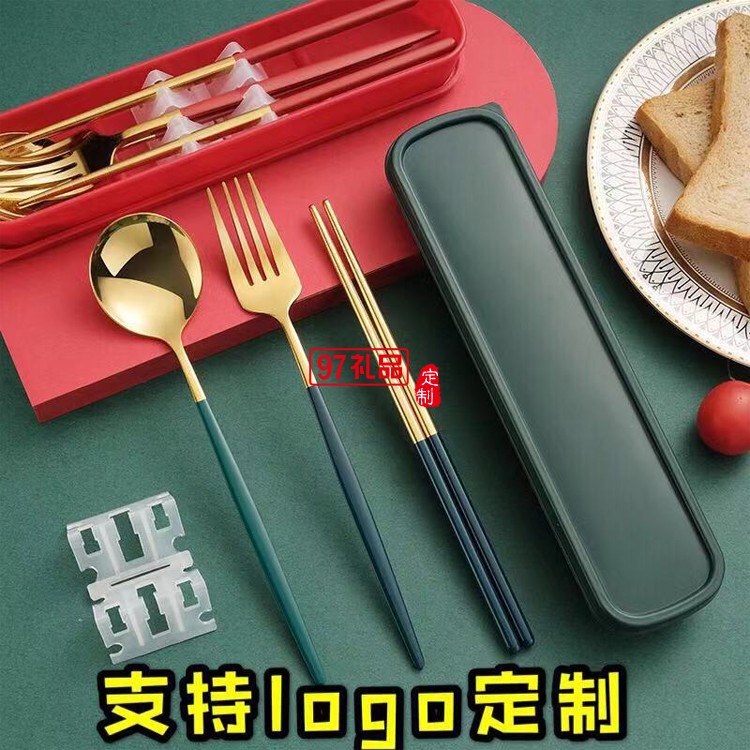 不銹鋼便攜餐具套裝勺子筷子叉子戶外三件套盒