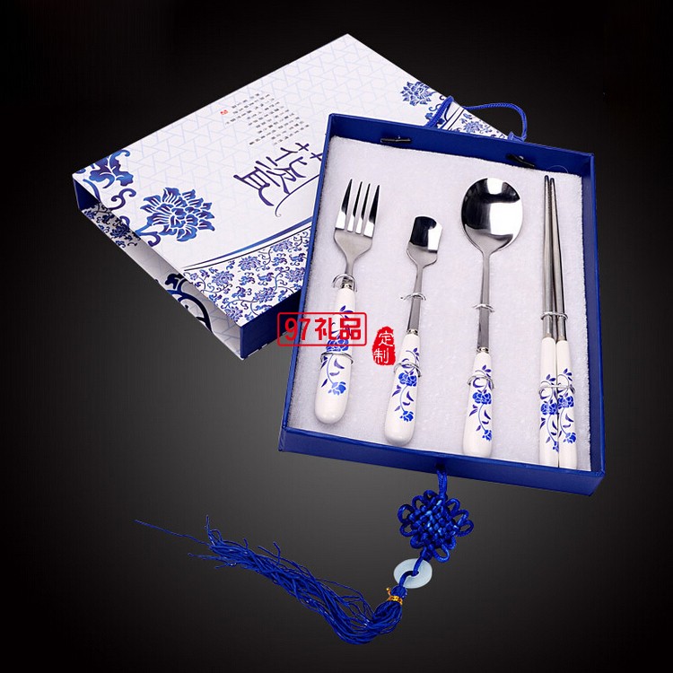 青花瓷餐具四件套