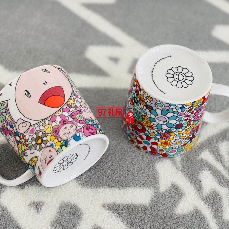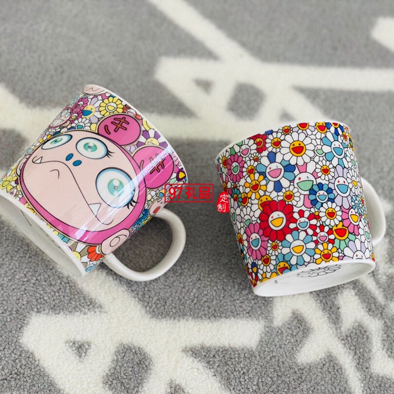 日本村上隆太陽花馬克杯限定版兔子餐盤餐具套裝禮盒2杯2盤碟網紅