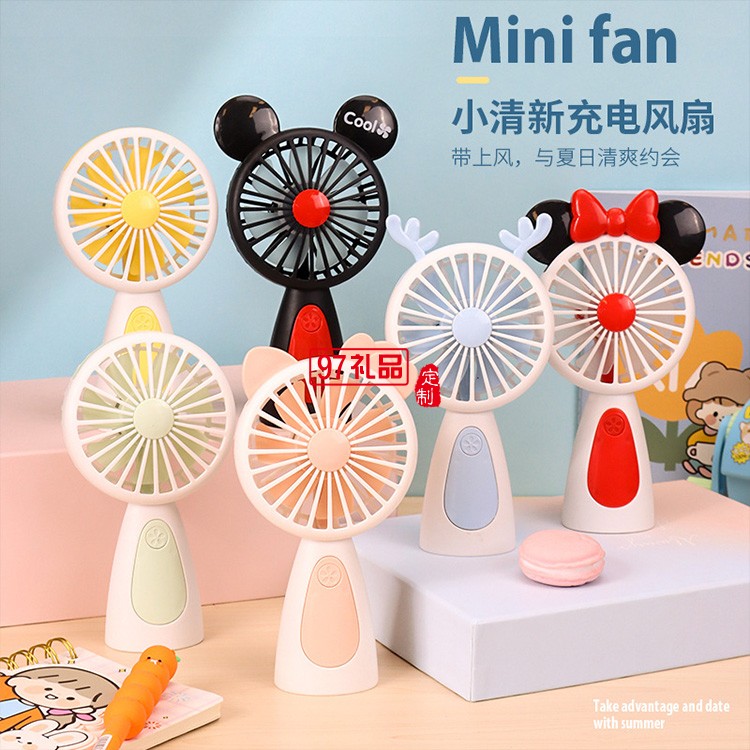 定制小風扇usb風扇手持卡通七彩燈風扇桌面便攜風扇