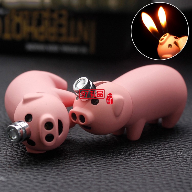 創意小豬雙火充氣打火機定制logo定制公司廣告促銷禮品