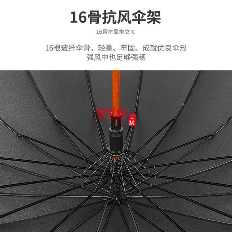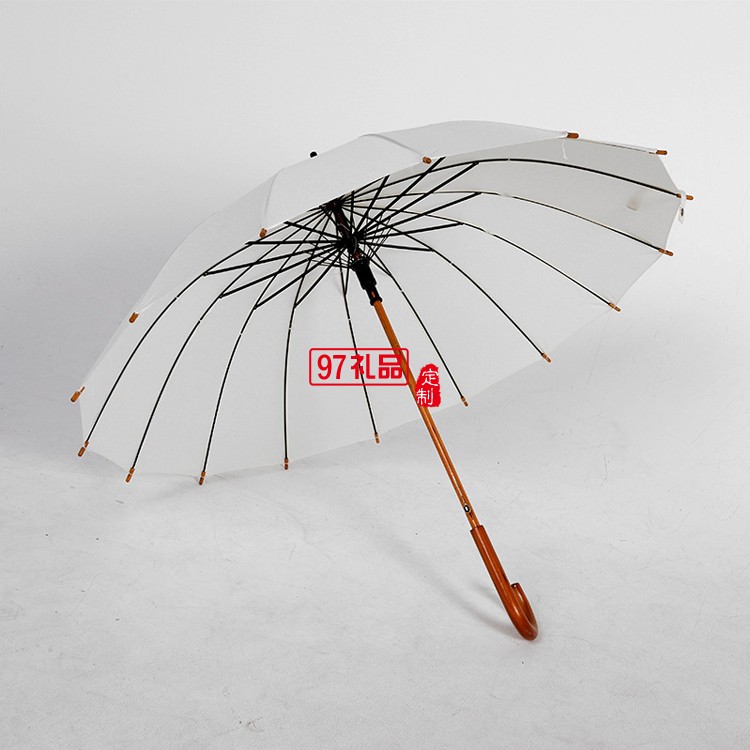 復古雨傘16骨長柄木桿純色日系簡約直桿傘廣告?zhèn)? />