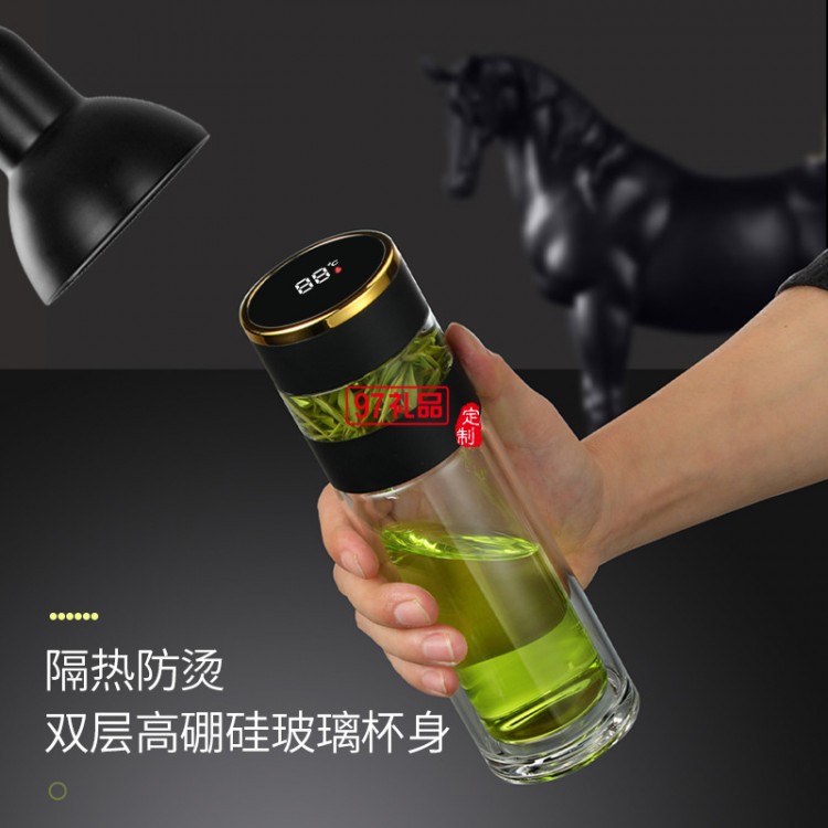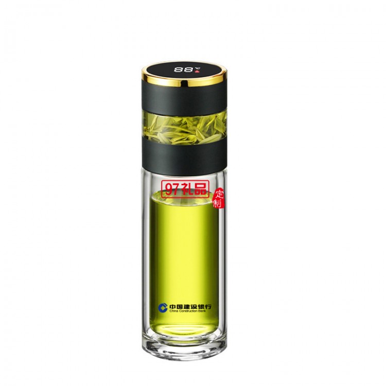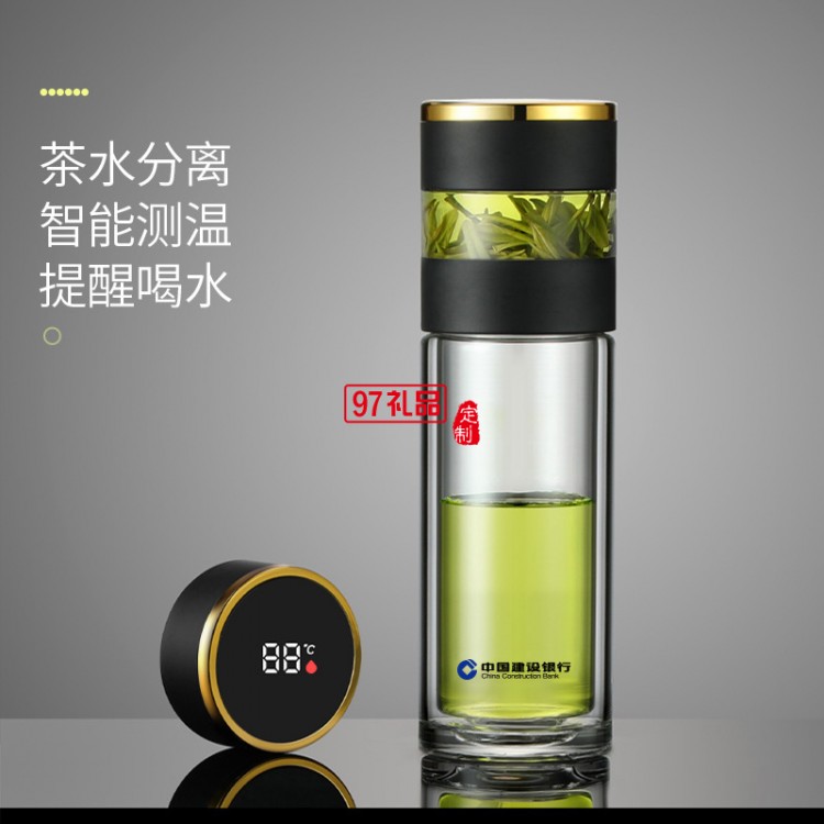 雙層玻璃杯溫度顯示蓋茶水分離水杯 建行定制案例