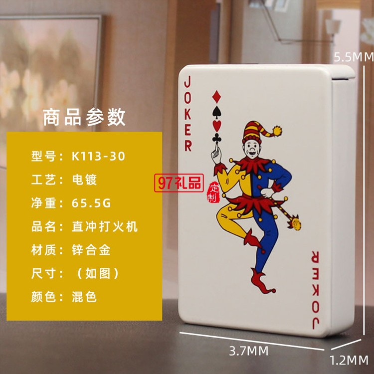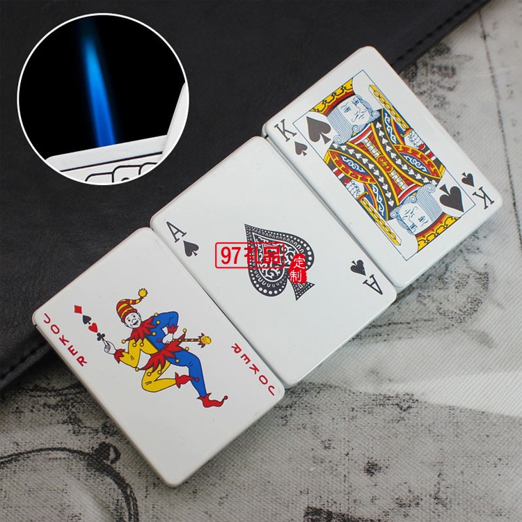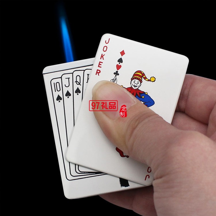 創(chuàng)意撲克造型防風(fēng)藍(lán)焰打火機(jī)金屬直沖氣體點(diǎn)煙器