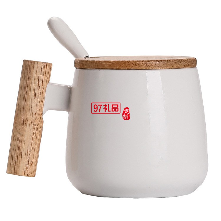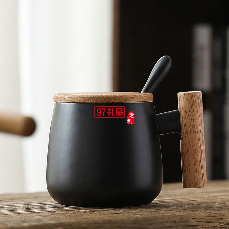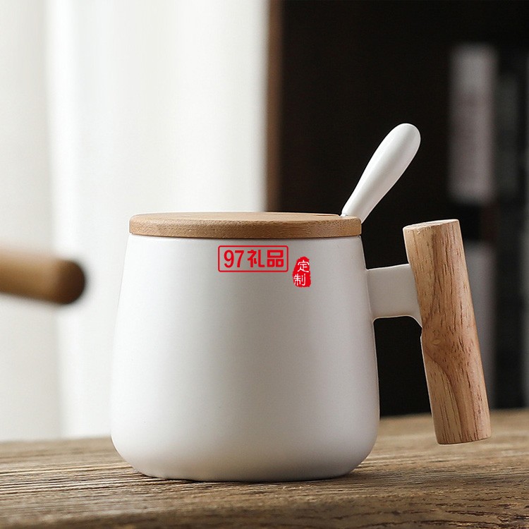 木柄馬克杯咖啡牛奶杯子辦公商務廣告禮品水杯陶瓷杯
