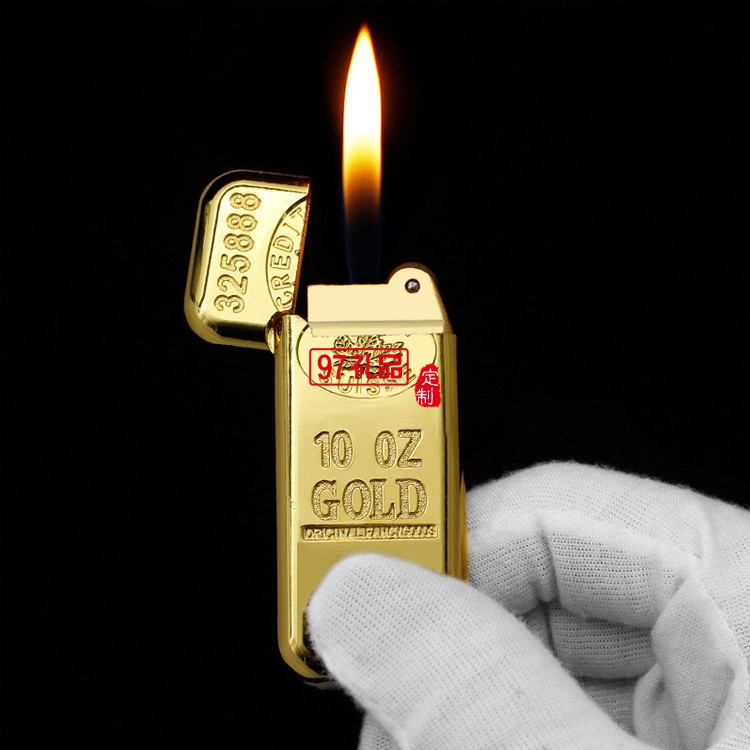 砂輪明火充氣金條打火機批發創意金屬點煙器