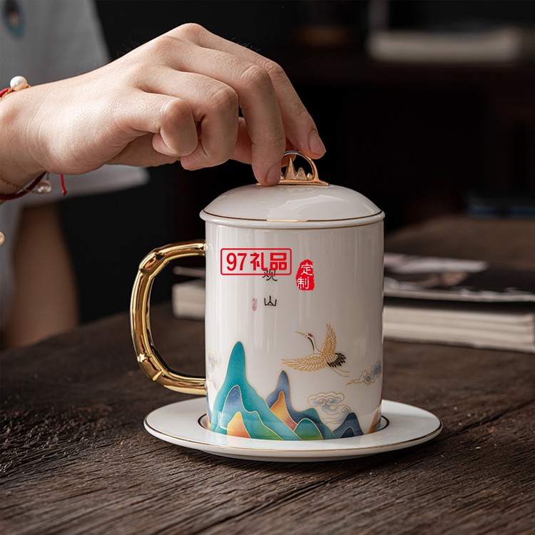觀山羊脂玉瓷個人杯泡茶杯陶瓷杯子送客戶禮品定制