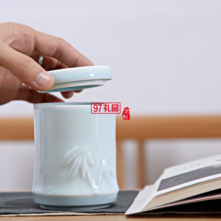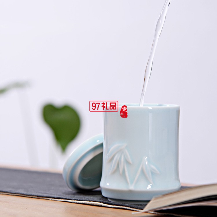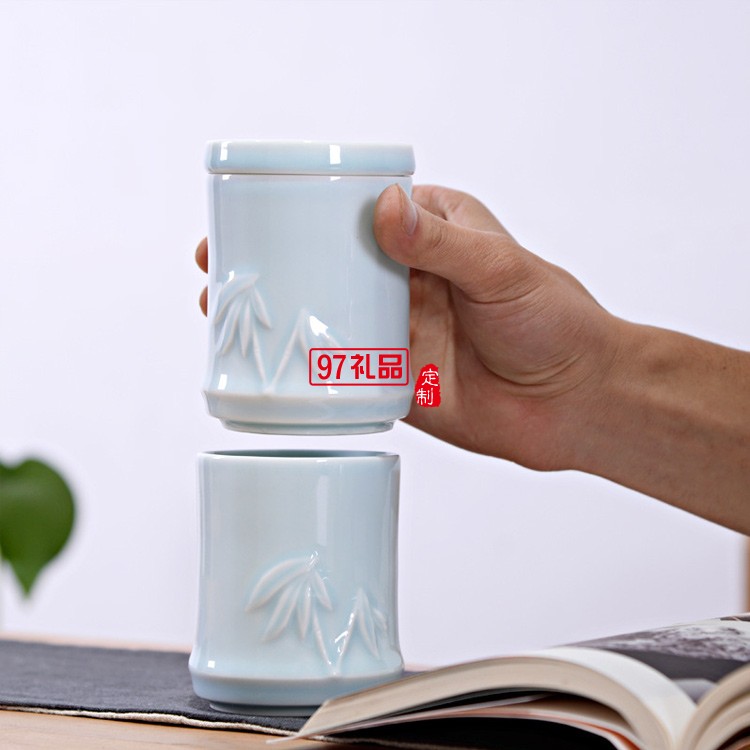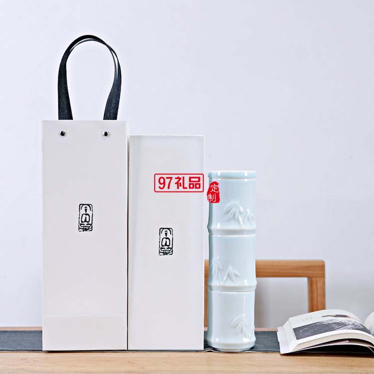 創意竹節杯陶瓷杯三疊杯定制LOGO