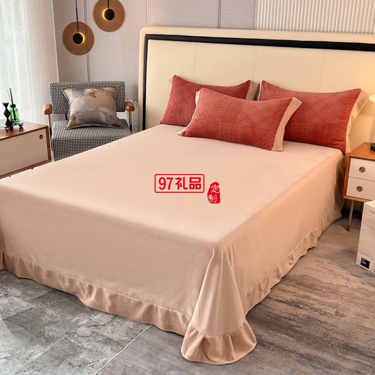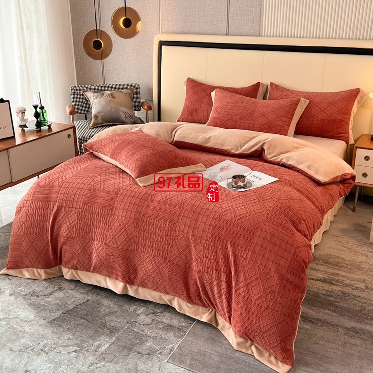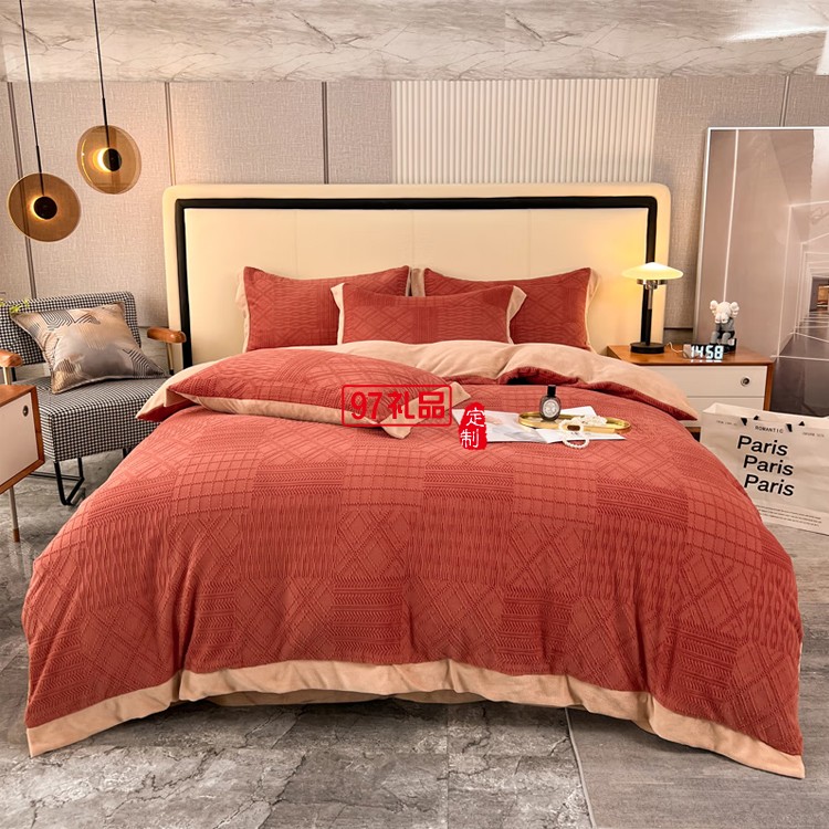 啄木鳥 牛奶絨雕花四件套-豆沙 ZMN-NNR003定制公司廣告禮品