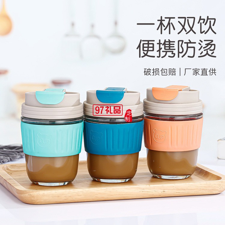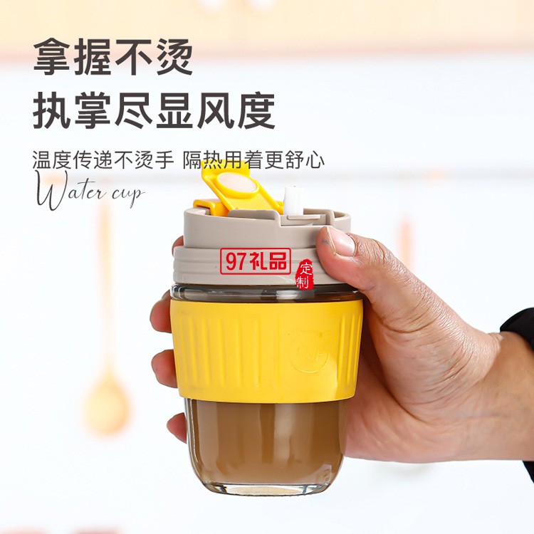 咖啡杯杯子玻璃杯帶蓋吸管杯隨行杯活動小禮品定制