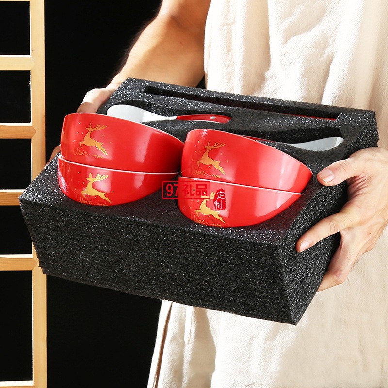 陶瓷福字碗紅色壽碗新年禮品碗虎年碗餐具碗筷定制燒刻字婚慶
