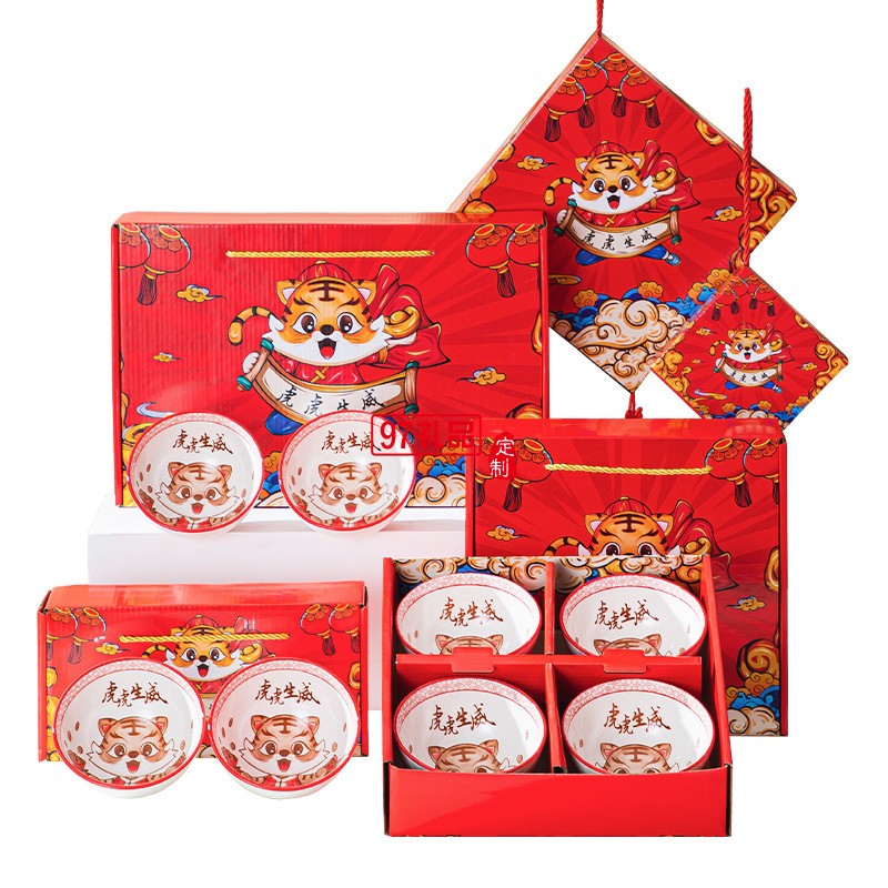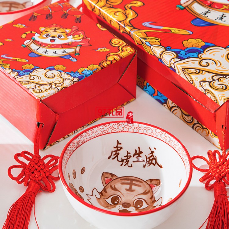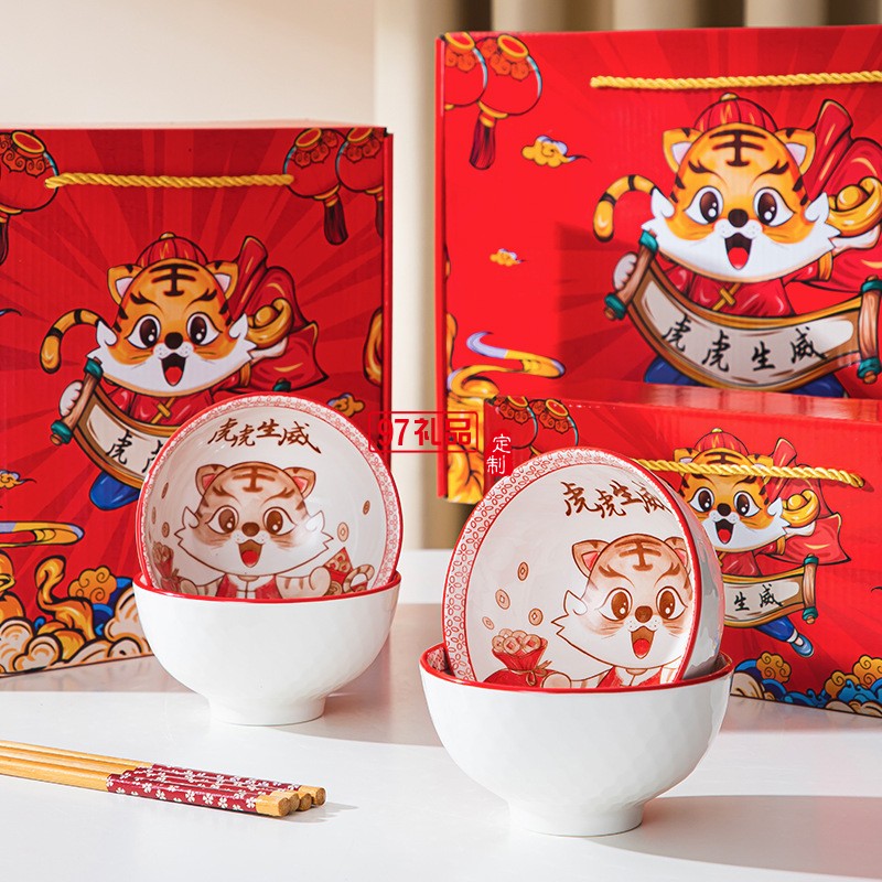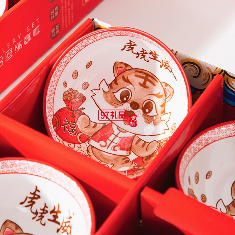 國潮虎虎生威陶瓷碗筷套裝禮盒裝新款虎年餐具禮品碗年會公司活動