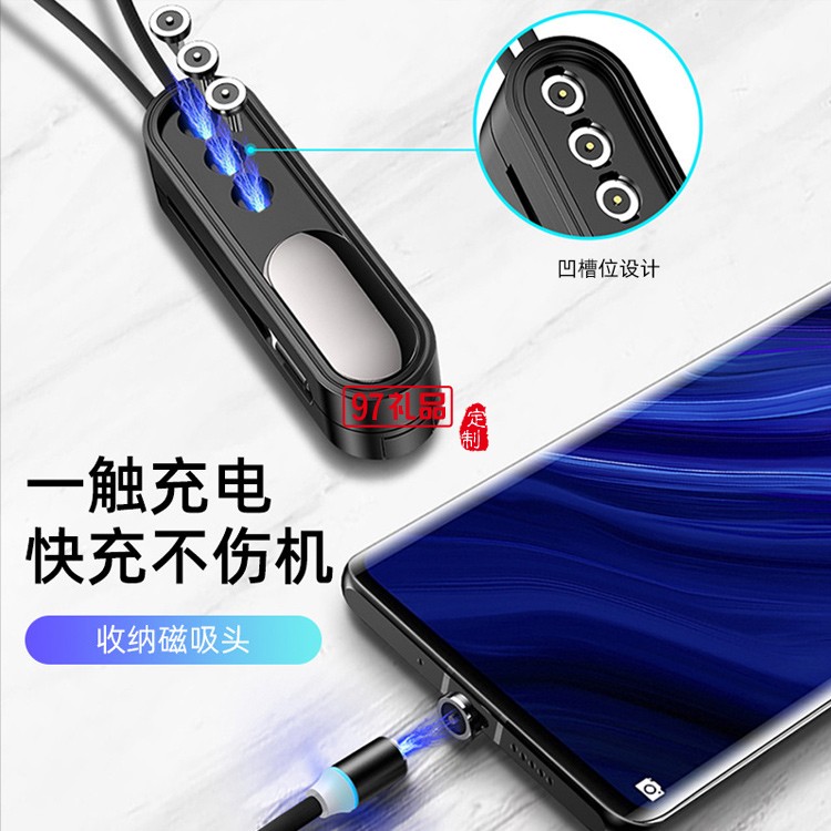 磁吸手機通用數據線一拖三適用蘋果安卓type-c磁性充電線