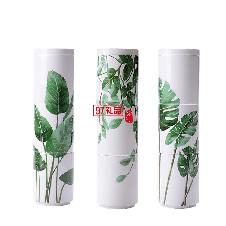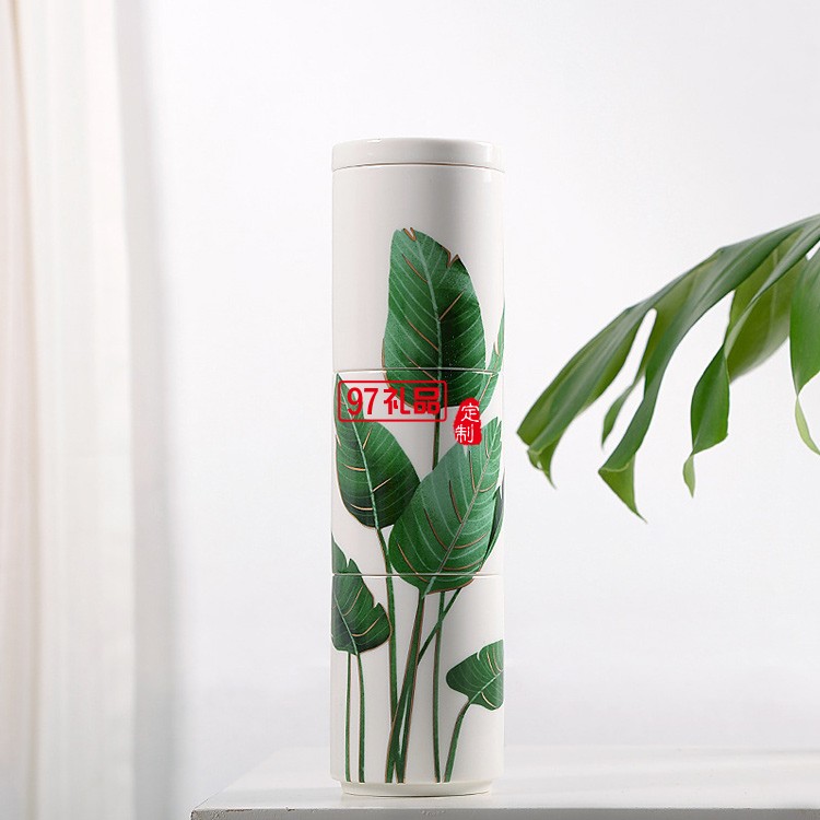 創意疊疊杯白瓷馬克杯芭蕉葉清新簡約日式陶瓷杯可定制LOGO