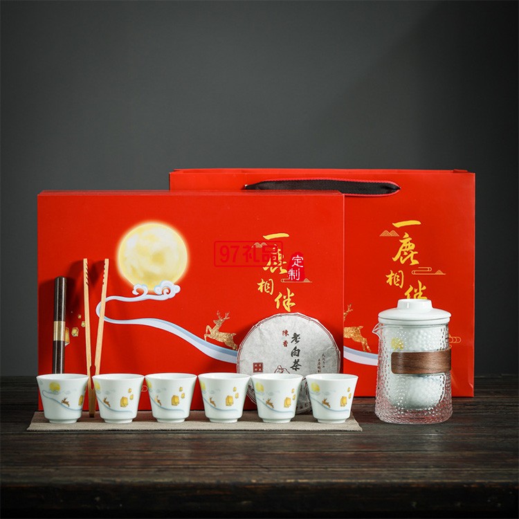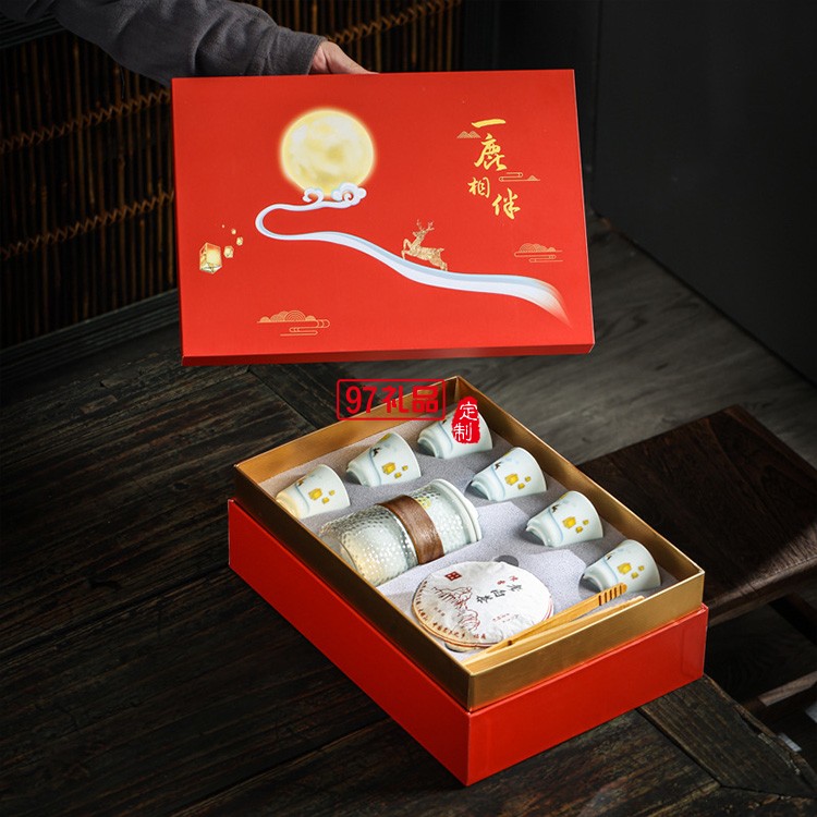 中秋節(jié)房地產(chǎn)銀行茶具禮盒茶水分離套裝公司隨手開業(yè)禮品月餅logo