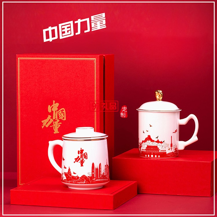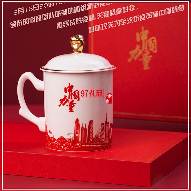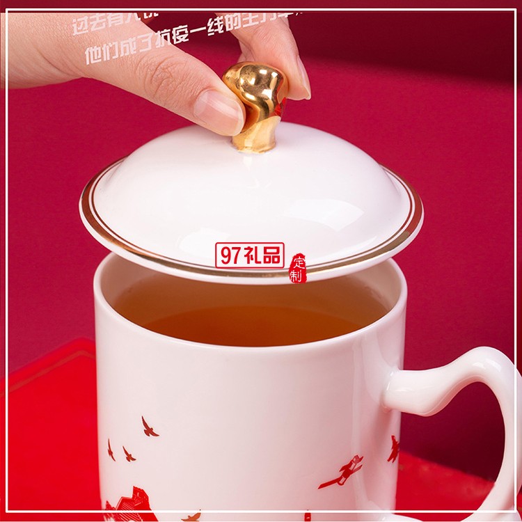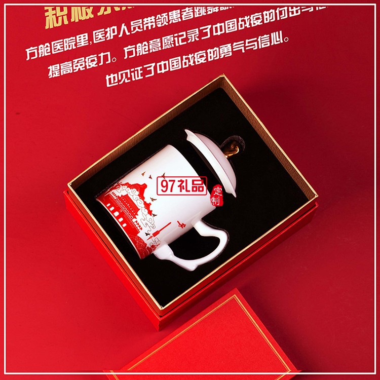 新款文創禮品陶瓷杯過濾套組志愿者抗疫紀念茶杯防疫中國力量杯子
