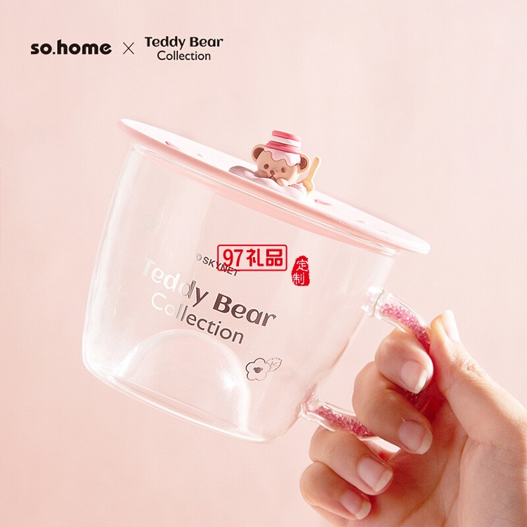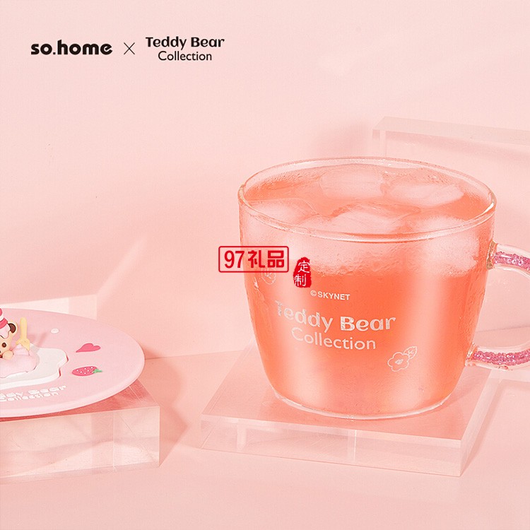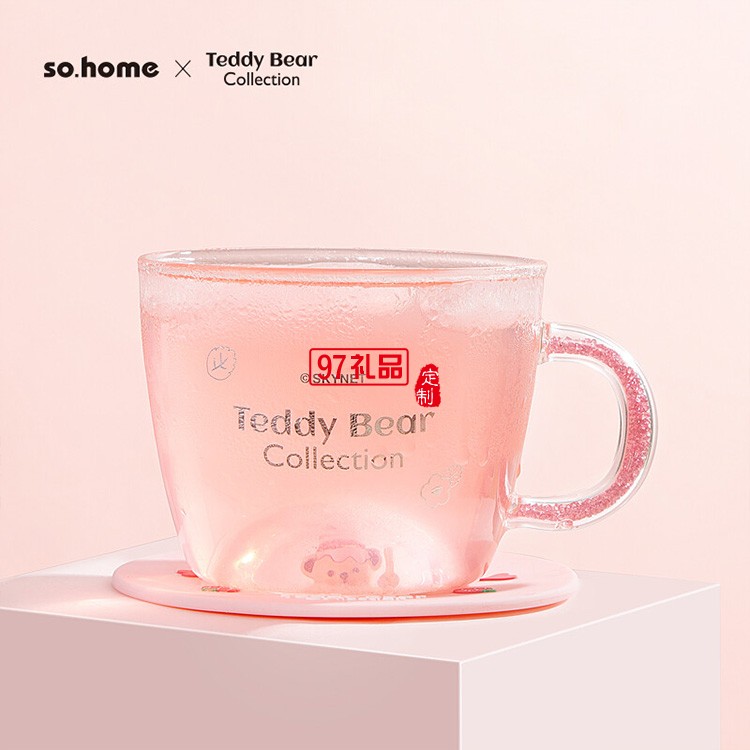 泰迪珍藏晶鉆玻璃杯茶咖啡飲料早餐微波爐杯禮品杯子定制