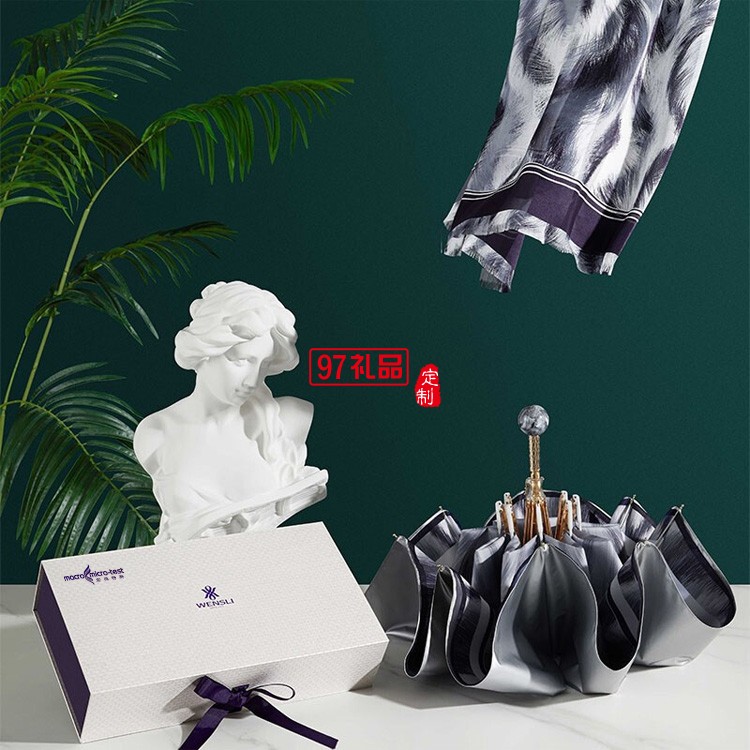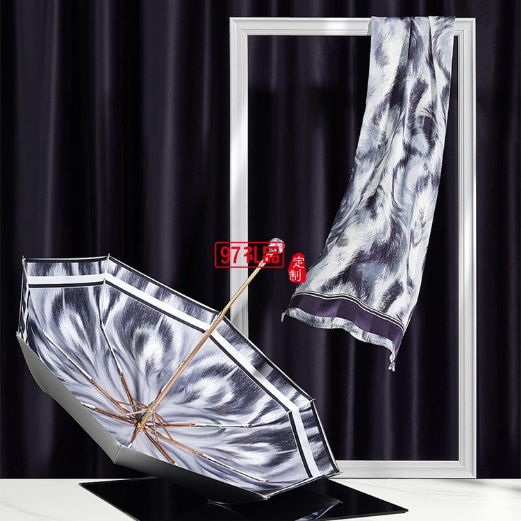 真絲桑蠶絲絲巾女防曬夏季禮盒 杭州絲綢長巾紗巾防曬傘套裝送禮 達芬奇密