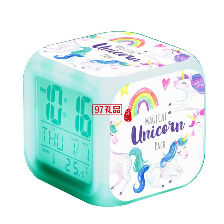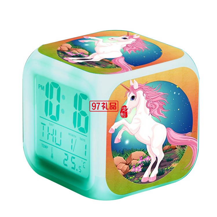 獨角獸七彩四方鬧鐘 創意小鬧鐘 學生兒童小禮品