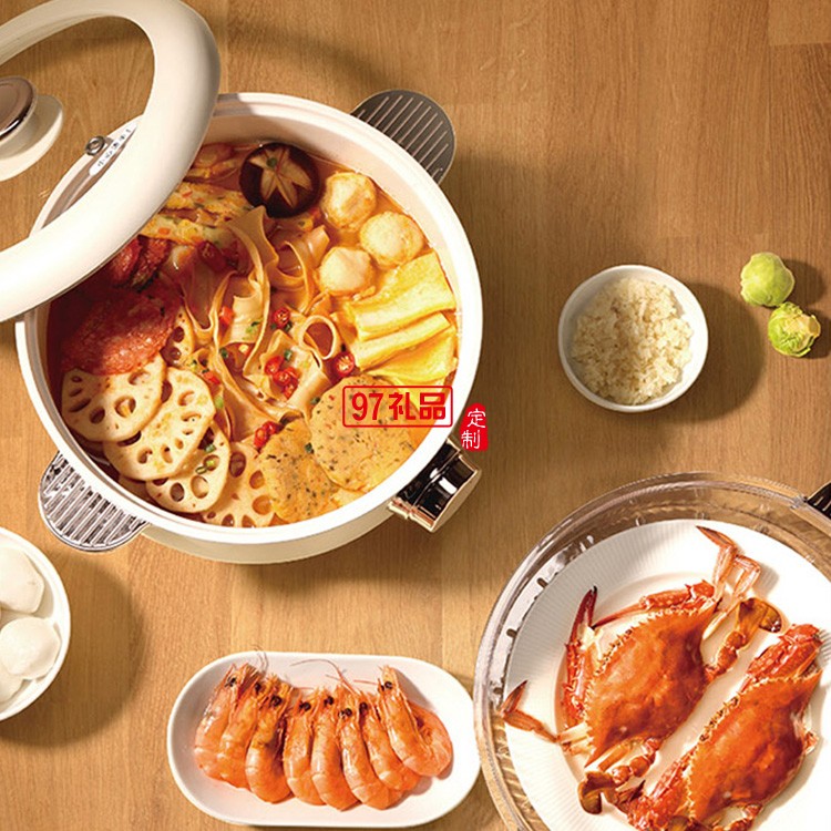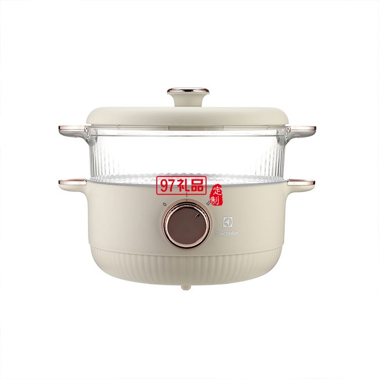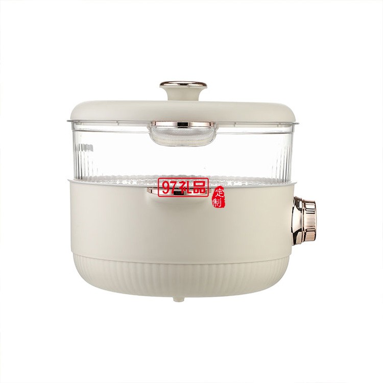 上蒸下煮大容量食品用不粘涂層多功能電火鍋(米色)