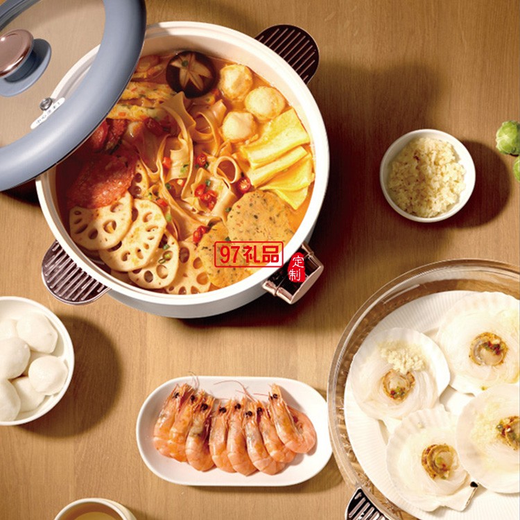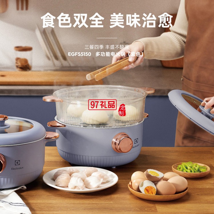 上蒸下煮大容量食品用不粘涂層多功能電火鍋(紫色)