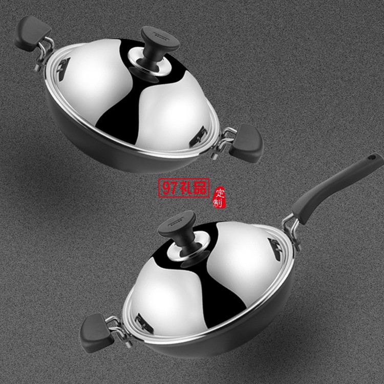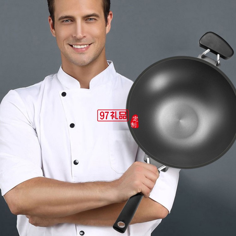 歐美達鑄造炒鍋無涂層物理不粘炒菜鍋OC7833-B定制公司廣告禮品