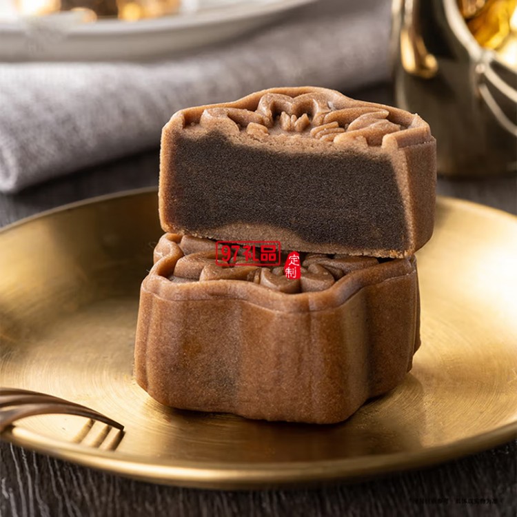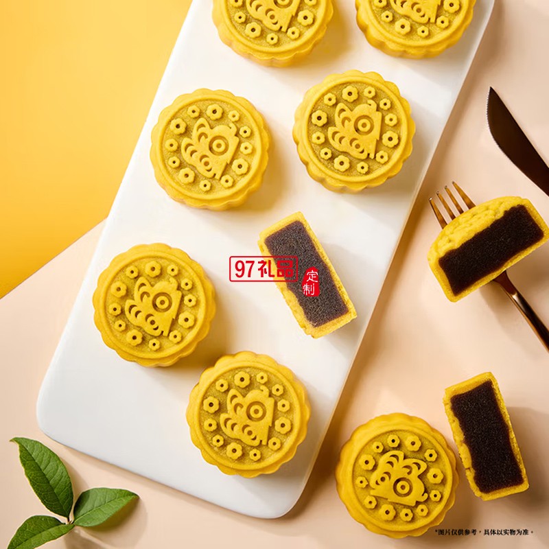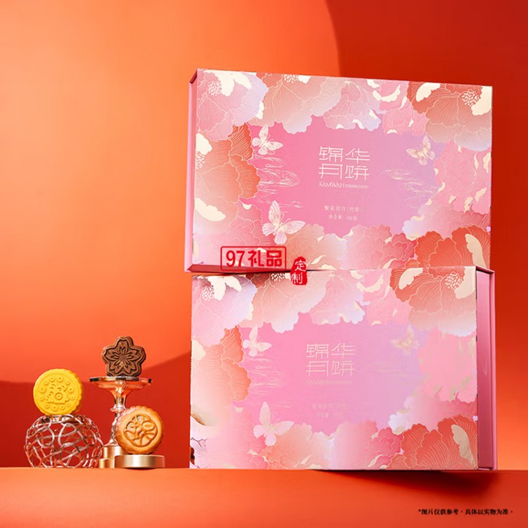 月餅禮盒蛋黃蓮蓉月餅純正紅豆沙月餅中秋團(tuán)購送禮 錦華繁華賀月560g