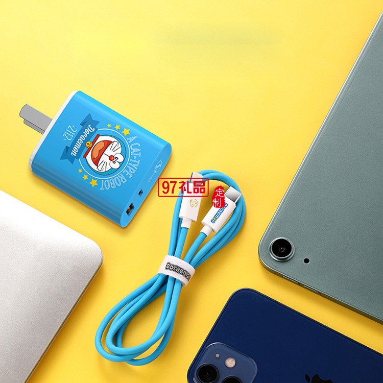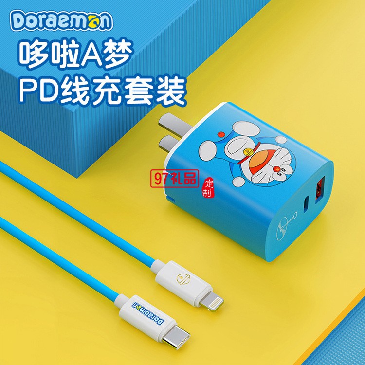 哆啦A夢 數據線+雙口20W快充充電器定制公司廣告禮品