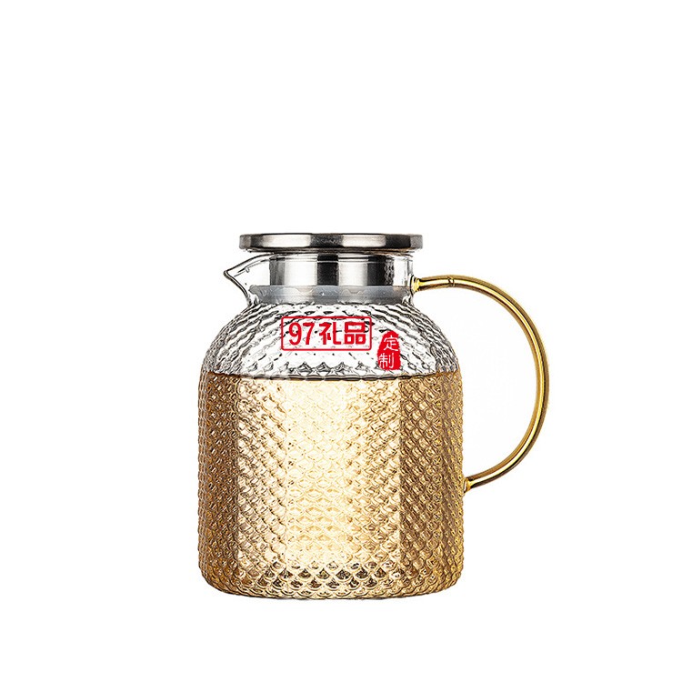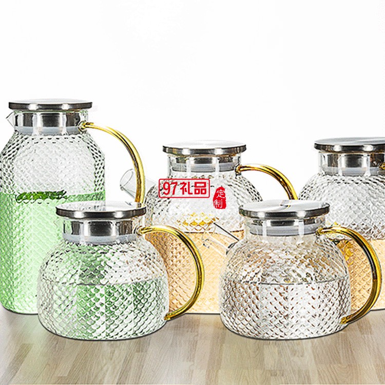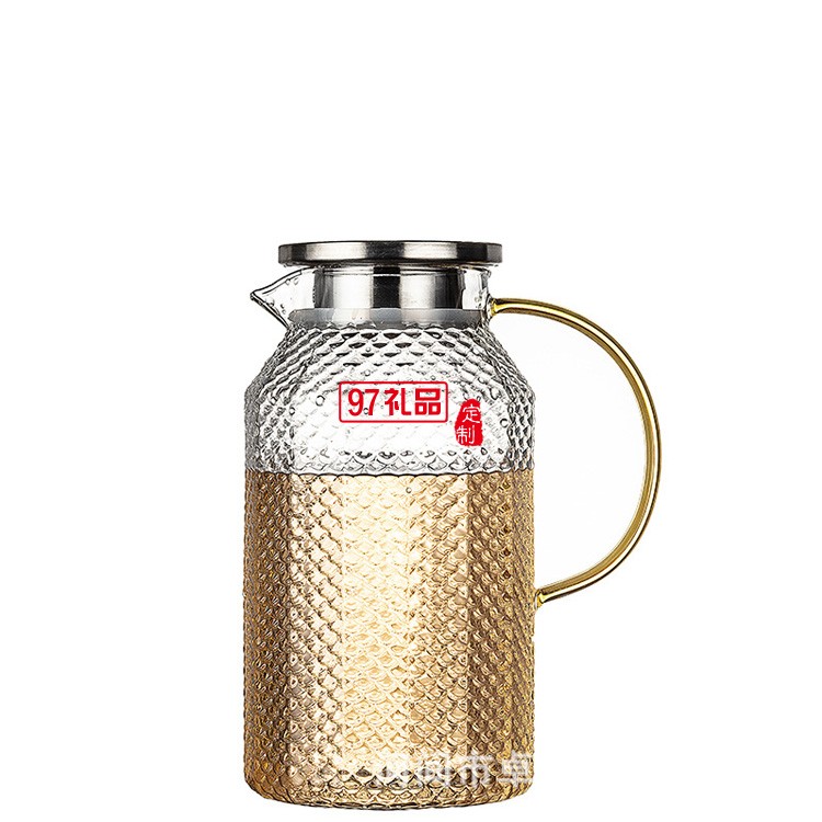 高硼硅錘紋冷水壺大容量涼水壺 玻璃果汁涼水壺帶把耐高溫開水壺