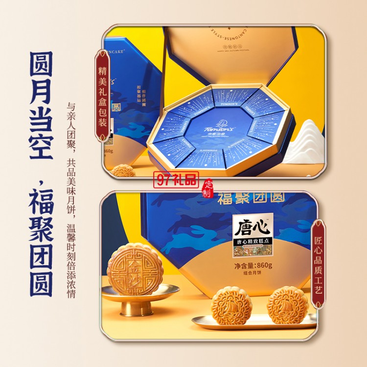 唐心福聚團圓月餅禮盒裝860g中秋送禮蛋黃蓮蓉月餅紅豆沙月餅