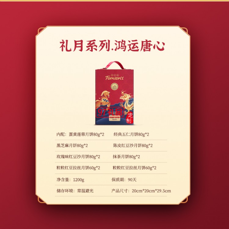 唐心鴻運唐心月餅禮盒多口味組合蛋黃蓮蓉經典五仁月餅中秋送禮