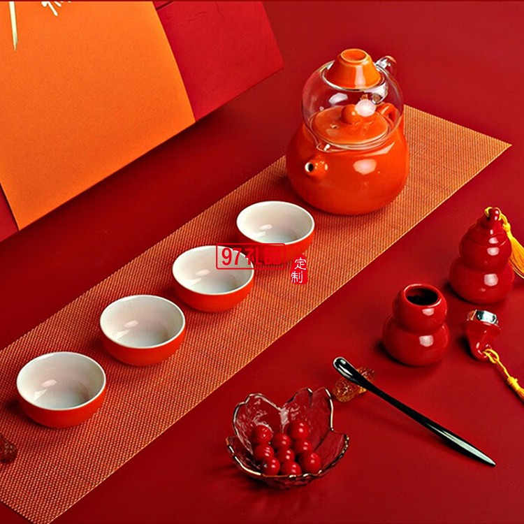 • 商品名稱:東客集國風新年禮盒茶具套裝福上加福商務送禮伴手禮新年回饋客戶禮兩壺四杯陶瓷禮品 紅色