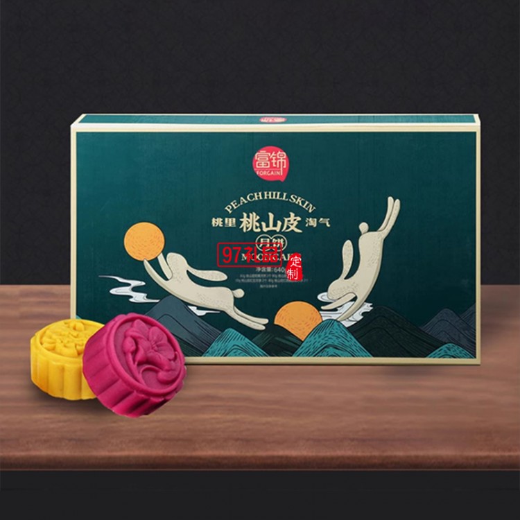 富錦桃里淘氣桃山皮月餅禮盒廣式糕點多口味中秋送禮640克