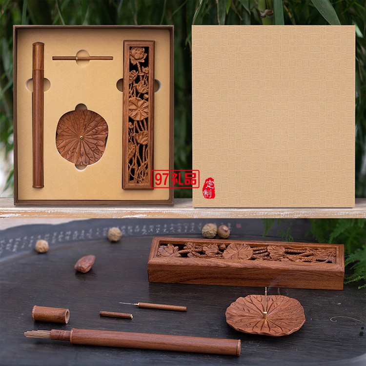 紅木質(zhì)線香臥香爐 小型銅木音響