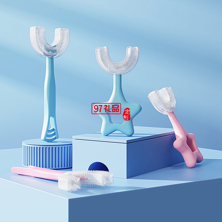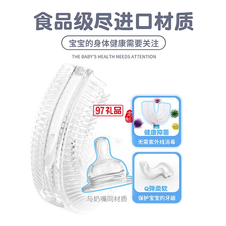 手動兒童U型牙刷硅膠牙刷寶寶口含式U型牙刷定制公司廣告禮品