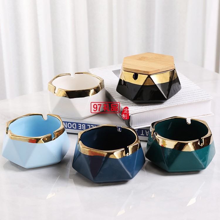 北歐陶瓷煙灰缸創意家用客廳酒店KTV辦公室帶蓋煙缸廣告禮品logo