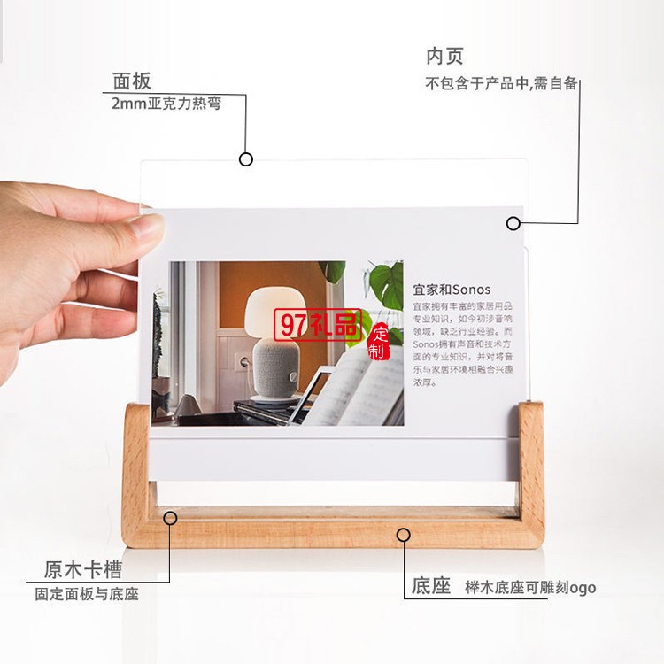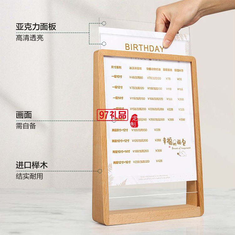 創意A4木質框架桌面立牌臺卡木質相框 可定制logo活動小禮品