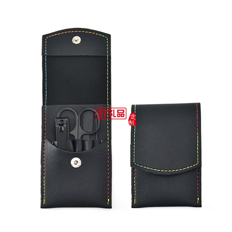 定制炫黑折袋指甲剪4件套設計logo碳鋼指甲刀禮品指甲鉗