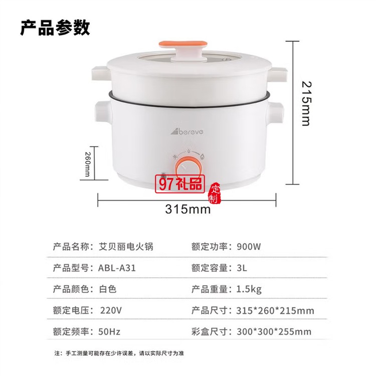 多功能電火鍋ABL-A31 3L大容量不粘鍋定制公司廣告禮品