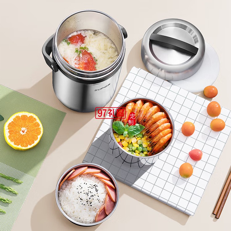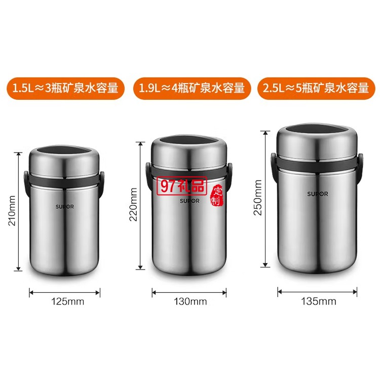 蘇泊爾不銹鋼便當帶飯飯盒提鍋桶2.5LKF25A1定制公司廣告禮品