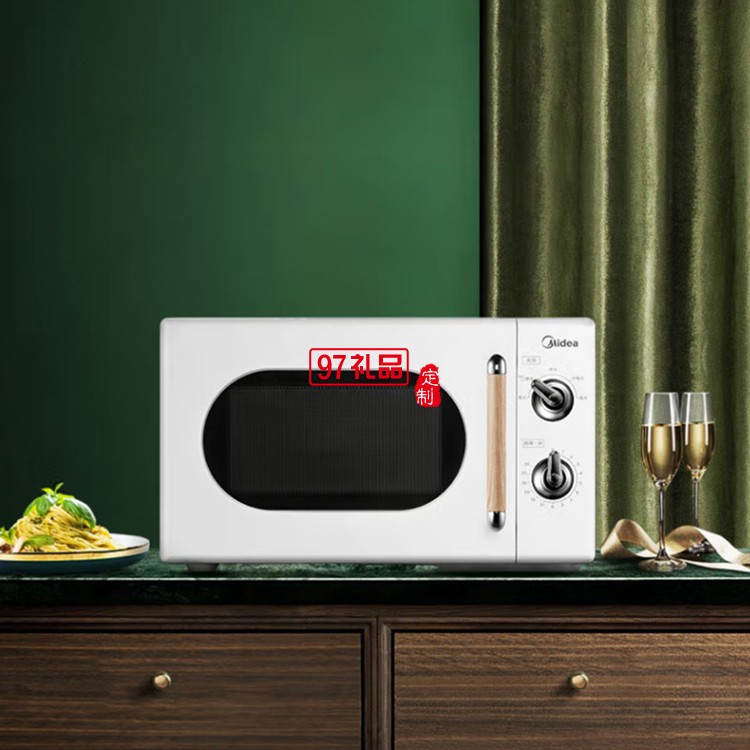 美的復(fù)古旋鈕微波爐360°轉(zhuǎn)盤式加熱20升PM2004定制公司廣告禮品