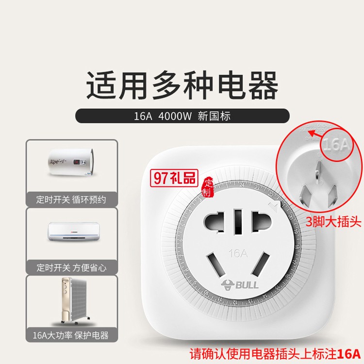 公牛定時插座16A自動斷電空調熱水器開關GND-2D定制公司廣告禮品