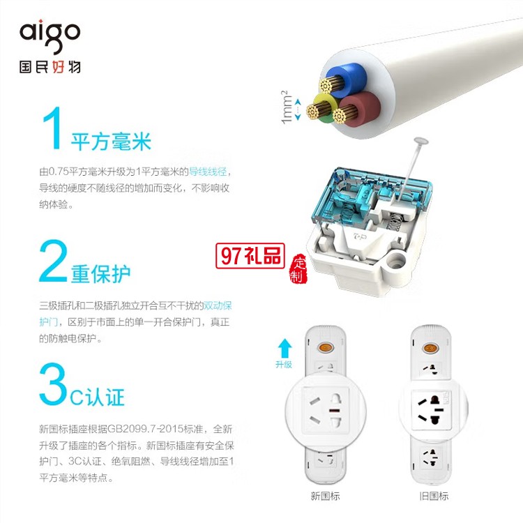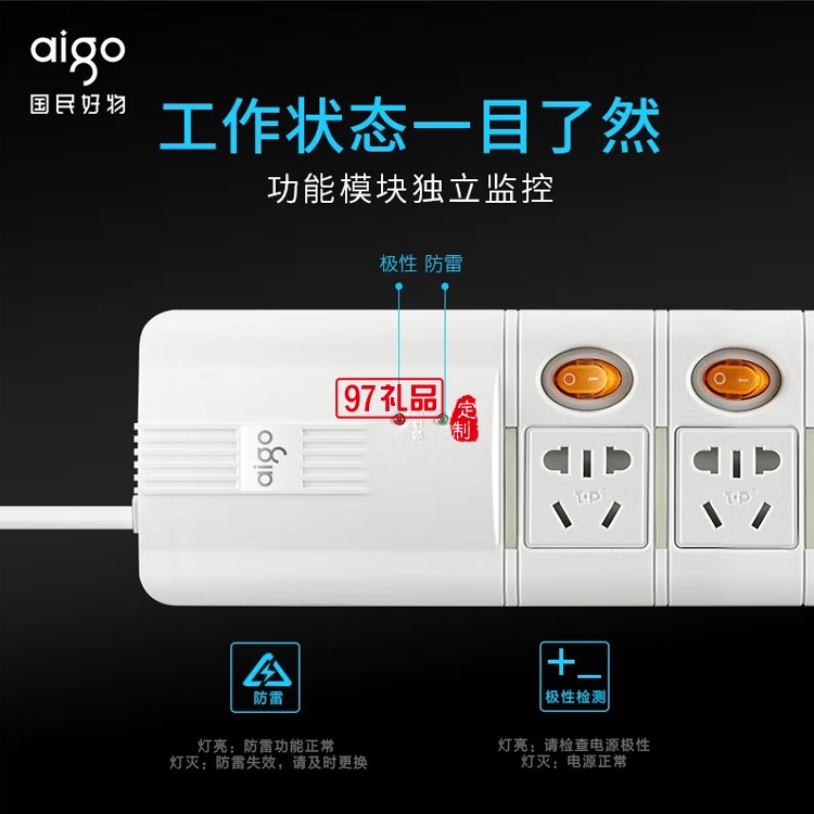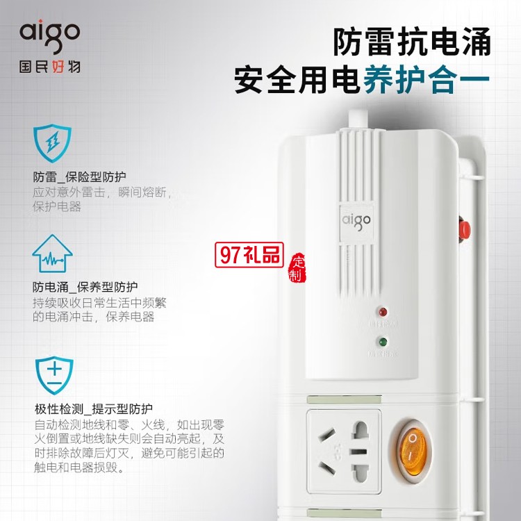 愛國者防雷插座/插線板/插排/排插S4K4全長3米定制公司廣告禮品