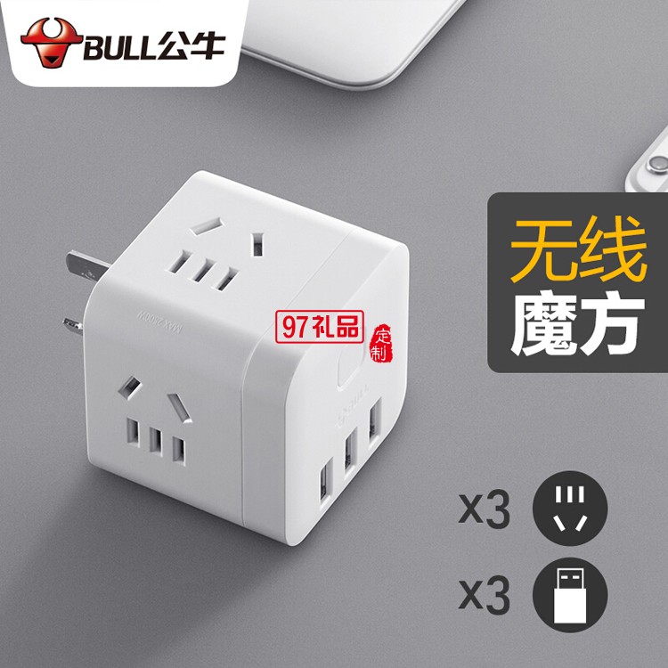 公牛充電魔方接線板多功能電源插座轉換器U303UW定制公司廣告禮品